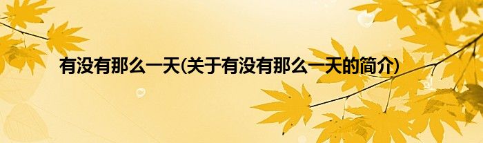 本文关于有没有那么一天的简介就讲解完毕,希望对大家有所帮助。