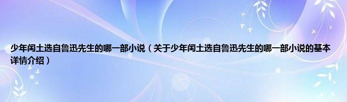 本文关于少年闰土选自鲁迅先生的哪一部小说的基本详情介绍就讲解完毕,希望对大家有所帮助。