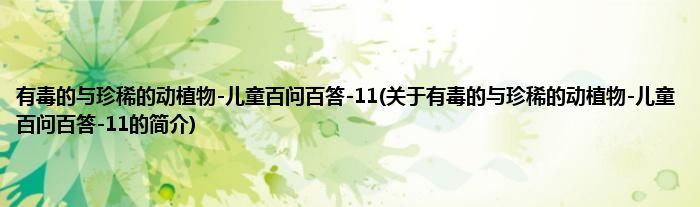本文关于有毒的与珍稀的动植物-儿童百问百答-11的简介就讲解完毕,希望对大家有所帮助。