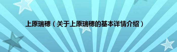 本文关于上原瑞穂的基本详情介绍就讲解完毕,希望对大家有所帮助。