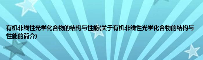 本文关于有机非线性光学化合物的结构与性能的简介就讲解完毕,希望对大家有所帮助。