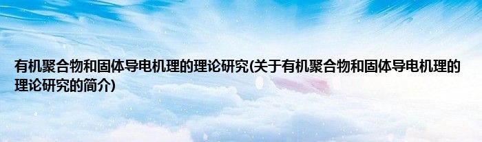 本文关于有机聚合物和固体导电机理的理论研究的简介就讲解完毕,希望对大家有所帮助。