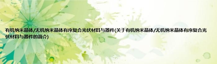 本文关于有机纳米晶体/无机纳米晶体有序复合光伏材料与器件的简介就讲解完毕,希望对大家有所帮助。