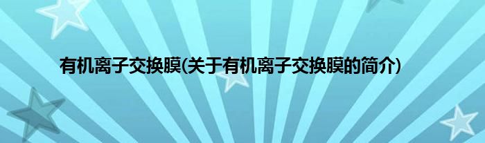 本文关于有机离子交换膜的简介就讲解完毕,希望对大家有所帮助。