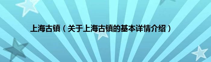 本文关于上海古镇的基本详情介绍就讲解完毕,希望对大家有所帮助。