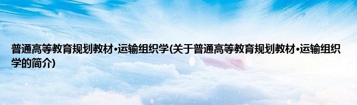 本文关于普通高等教育规划教材·运输组织学的简介就讲解完毕,希望对大家有所帮助。