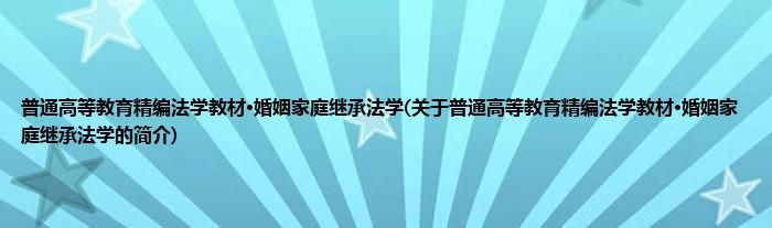 普通高等教育精编法学教材·婚姻家庭继承法学(关于普通高等教育精编法学教材·婚姻家庭继承法学的简介)