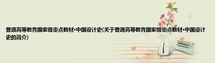 1、 《普通高等教育国家级重点教材?中国设计史》是一本以全新视角,全面而有系统地讲述和研究中国设计的起源、生长、发展和演变的重要教材。