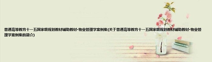 本文关于普通高等教育十一五国家级规划教材辅助教材·物业管理学案例集的简介就讲解完毕,希望对大家有所帮助。