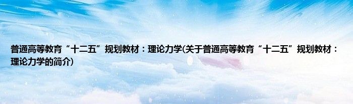 1、 《普通高等教育“十二五”规划教材:理论力学》是中国电力出版社出版的书籍。