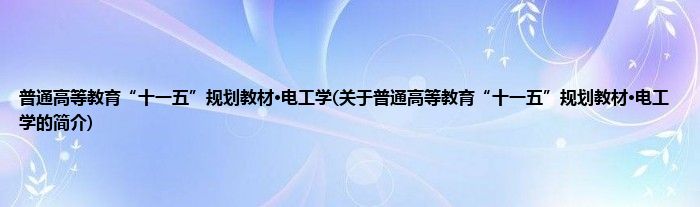 本文关于普通高等教育“十一五”规划教材·电工学的简介就讲解完毕,希望对大家有所帮助。