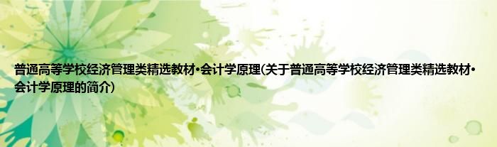 大家好,普通高等学校经济管理类精选教材·会计学原理,关于普通高等学校经济管理类精选教材·会计学原理的简介很多人还不知道,现在让我们一起来看看吧!