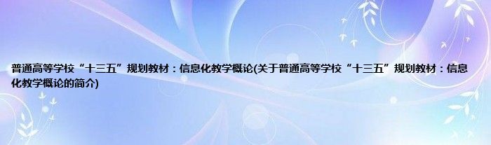 大家好,普通高等学校“十三五”规划教材:信息化教学概论,关于普通高等学校“十三五”规划教材:信息化教学概论的简介很多人还不知道,现在让我们一起来看看吧!