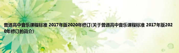 本文关于普通高中音乐课程标准 2017年版2020年修订的简介就讲解完毕,希望对大家有所帮助。