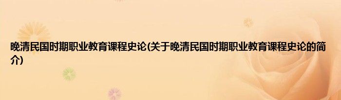 本文关于晚清民国时期职业教育课程史论的简介就讲解完毕,希望对大家有所帮助。