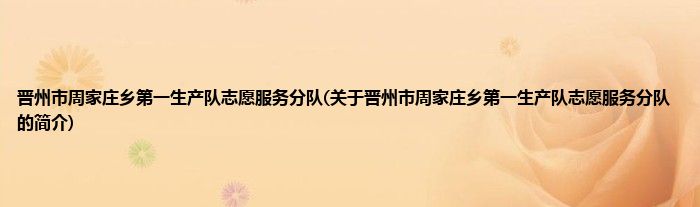 本文关于晋州市周家庄乡第一生产队志愿服务分队的简介就讲解完毕,希望对大家有所帮助。