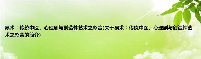 本文关于易术:传统中医、心理剧与创造性艺术之整合的简介就讲解完毕,希望对大家有所帮助。