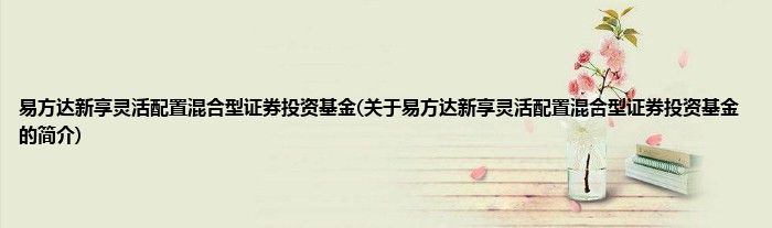 大家好,易方达新享灵活配置混合型证券投资基金,关于易方达新享灵活配置混合型证券投资基金的简介很多人还不知道,现在让我们一起来看看吧!
