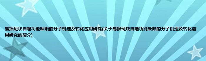 本文关于易损斑块自噬功能缺陷的分子机理及转化应用研究的简介就讲解完毕,希望对大家有所帮助。