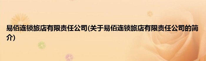 本文关于易佰连锁旅店有限责任公司的简介就讲解完毕,希望对大家有所帮助。