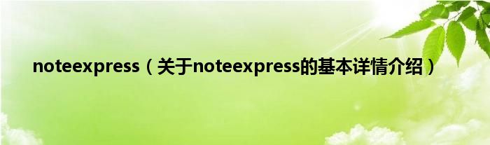 本文关于noteexpress的基本详情介绍就讲解完毕,希望对大家有所帮助。