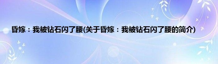 本文关于昏嫁:我被钻石闪了腰的简介就讲解完毕,希望对大家有所帮助。