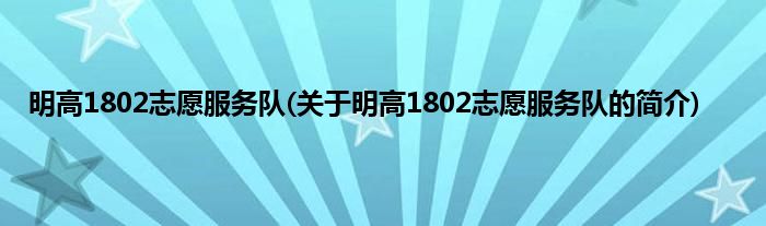 明高1802志愿服务队(关于明高1802志愿服务队的简介)