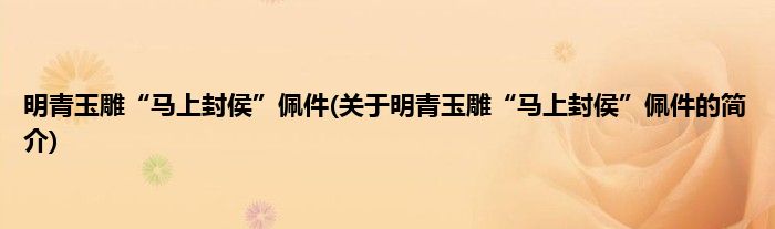本文关于明青玉雕“马上封侯”佩件的简介就讲解完毕,希望对大家有所帮助。
