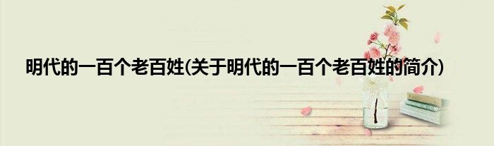 本文关于明代的一百个老百姓的简介就讲解完毕,希望对大家有所帮助。