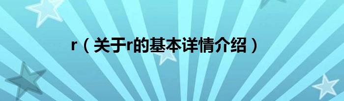 大家好我是小蝌蚪,r,关于r的基本详情介绍很多人还不知道,那么现在让我们一起来看看吧!