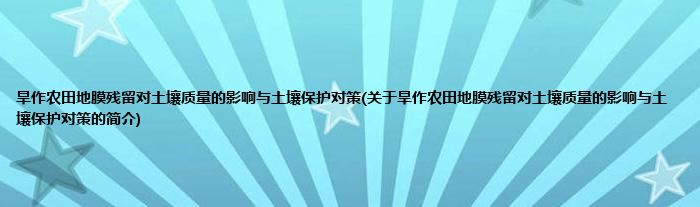 本文关于旱作农田地膜残留对土壤质量的影响与土壤保护对策的简介就讲解完毕,希望对大家有所帮助。