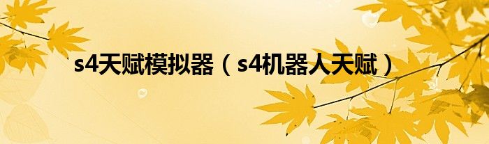 大家好,精选小编来为大家解答以上问题。s4天赋模拟器,s4机器人天赋很多人还不知道,现在让我们一起来看看吧!