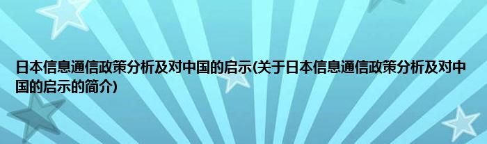 本文关于日本信息通信政策分析及对中国的启示的简介就讲解完毕,希望对大家有所帮助。