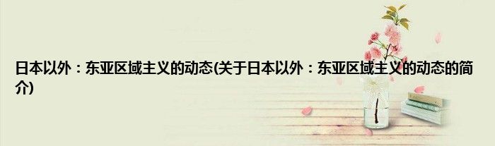 本文关于日本以外:东亚区域主义的动态的简介就讲解完毕,希望对大家有所帮助。