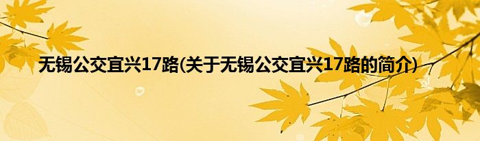 本文关于无锡公交宜兴17路的简介就讲解完毕,希望对大家有所帮助。
