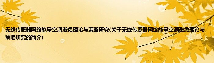 大家好,无线传感器网络能量空洞避免理论与策略研究,关于无线传感器网络能量空洞避免理论与策略研究的简介很多人还不知道,现在让我们一起来看看吧!