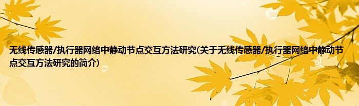 无线传感器/执行器网络中静动节点交互方法研究(关于无线传感器/执行器网络中静动节点交互方法研究的简介)