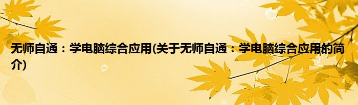 本文关于无师自通:学电脑综合应用的简介就讲解完毕,希望对大家有所帮助。