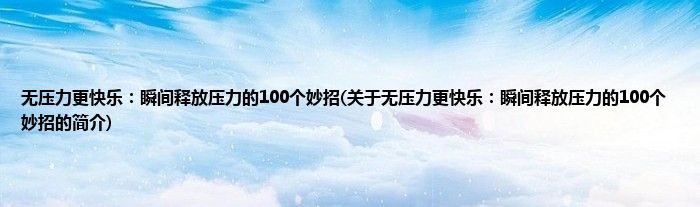 本文关于无压力更快乐:瞬间释放压力的100个妙招的简介就讲解完毕,希望对大家有所帮助。
