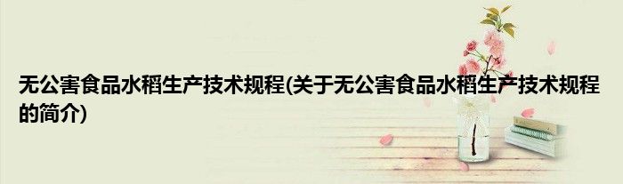 本文关于无公害食品水稻生产技术规程的简介就讲解完毕,希望对大家有所帮助。