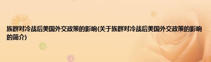 大家好,族群对冷战后美国外交政策的影响,关于族群对冷战后美国外交政策的影响的简介很多人还不知道,现在让我们一起来看看吧!