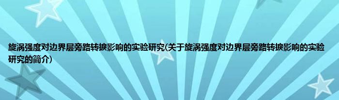 旋涡强度对边界层旁路转捩影响的实验研究(关于旋涡强度对边界层旁路转捩影响的实验研究的简介)