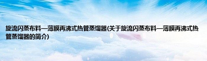 本文关于旋流闪蒸布料—薄膜再沸式热管蒸馏器的简介就讲解完毕,希望对大家有所帮助。