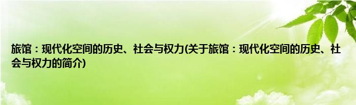 本文关于旅馆:现代化空间的历史、社会与权力的简介就讲解完毕,希望对大家有所帮助。