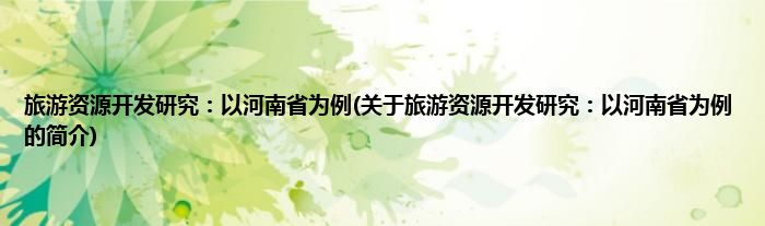 本文关于旅游资源开发研究:以河南省为例的简介就讲解完毕,希望对大家有所帮助。