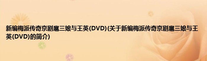 新编梅派传奇京剧扈三娘与王英(DVD)(关于新编梅派传奇京剧扈三娘与王英(DVD...