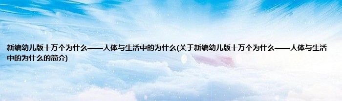 本文关于新编幼儿版十万个为什么——人体与生活中的为什么的简介就讲解完毕,希望对大家有所帮助。