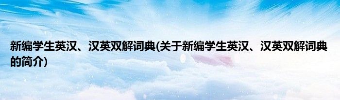 大家好,新编学生英汉、汉英双解词典,关于新编学生英汉、汉英双解词典的简介很多人还不知道,现在让我们一起来看看吧!