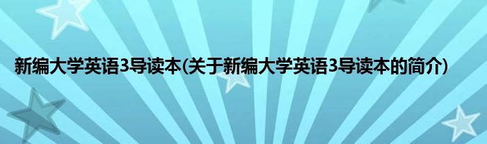 大家好,新编大学英语3导读本,关于新编大学英语3导读本的简介很多人还不知道,现在让我们一起来看看吧!