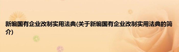本文关于新编国有企业改制实用法典的简介就讲解完毕,希望对大家有所帮助。